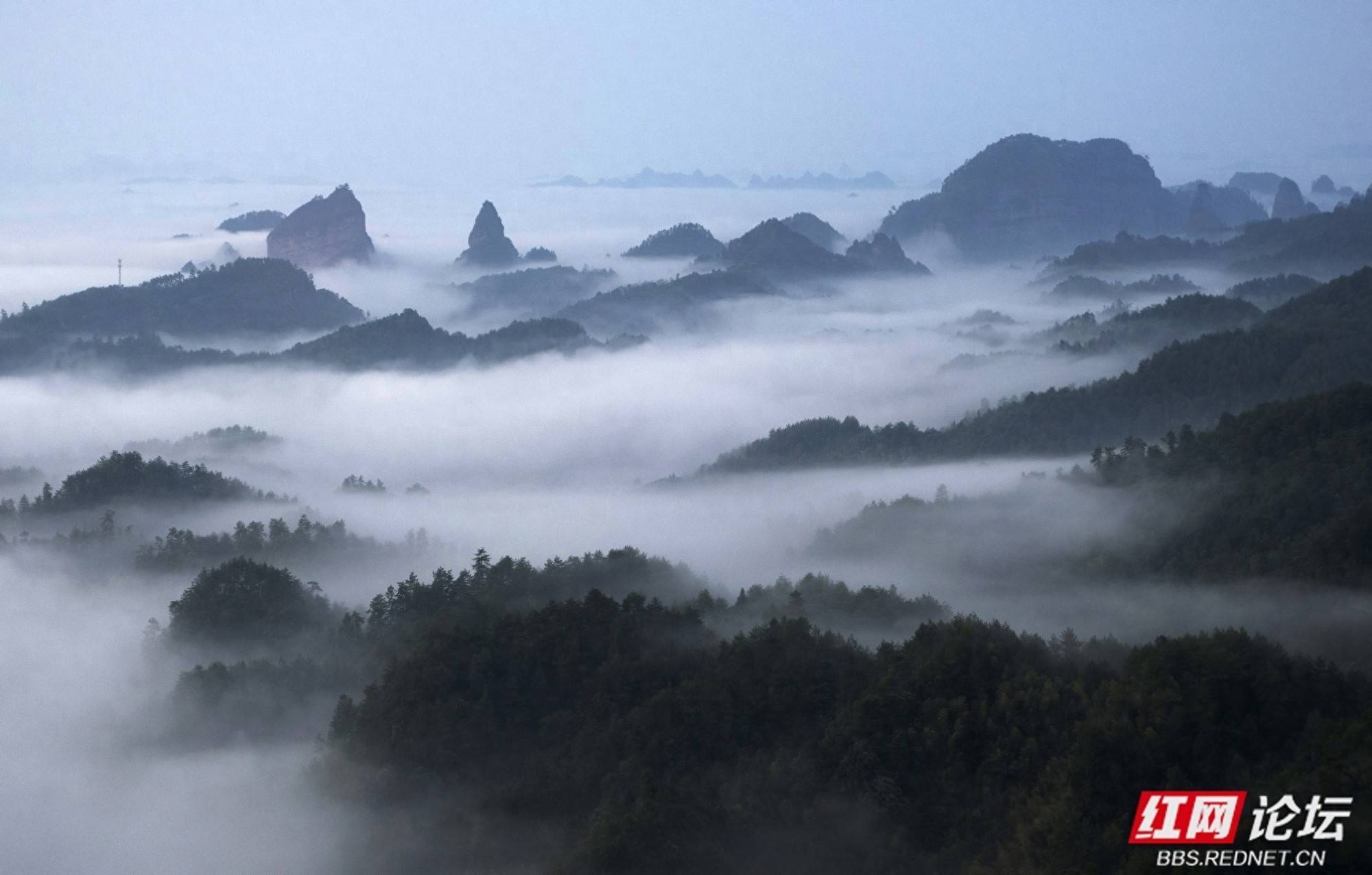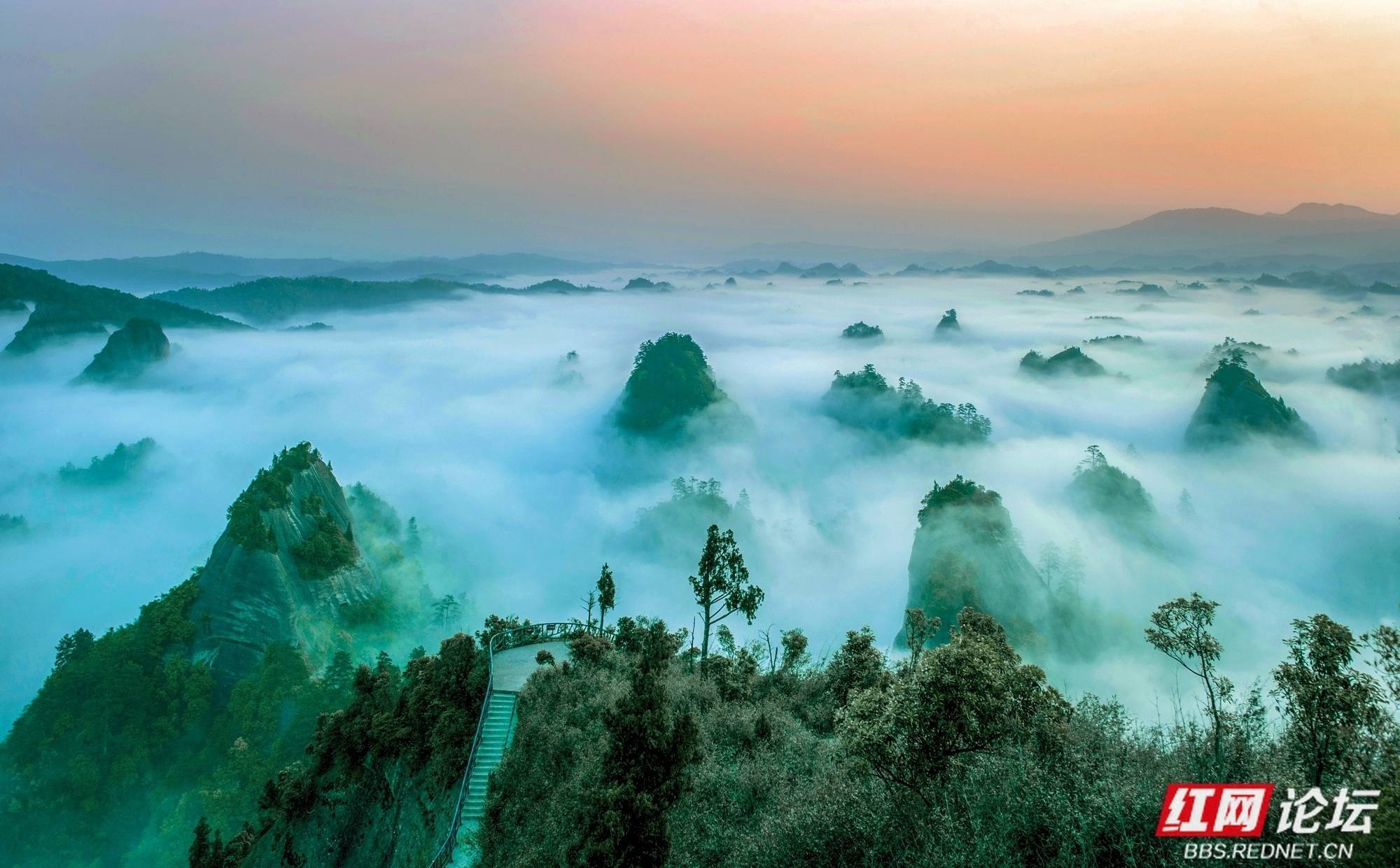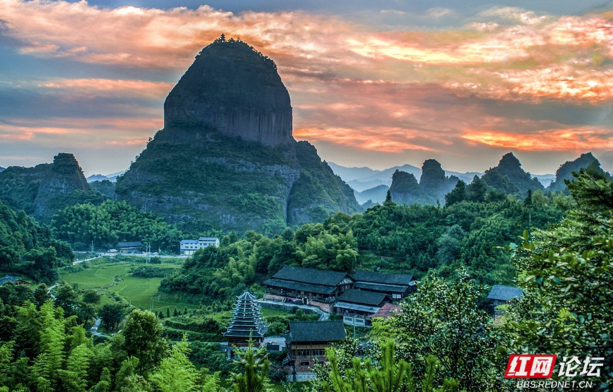 金秋时节,位于湖南省怀化市通道侗族自治县的独岩公园,迎来了最富诗意的时刻,丹霞地貌与日出云海交织成一幅动人画卷。作为怀化市通道万佛山风景名胜区的八大景点之一,独岩公园核心景观是数十座拔地而起的丹霞石峰。